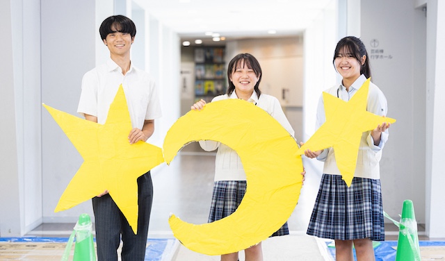 友達が実行委員として活動しているのを見てきて、面白そうだと思って中3のときに実行委員になりました。去年は装飾局として活動し、段ボールで招き猫を作ったのですが、段ボールを何枚か重ねて立てたりするだけでもコツが必要です。先輩にいろいろと教えてもらったりして、みんなで協力して作業することにやりがいを感じたので、今年も実行委員になりました。