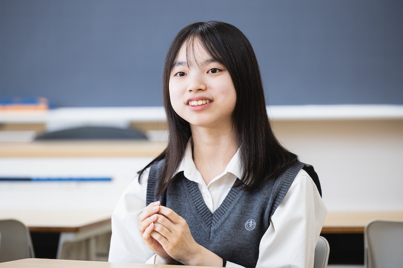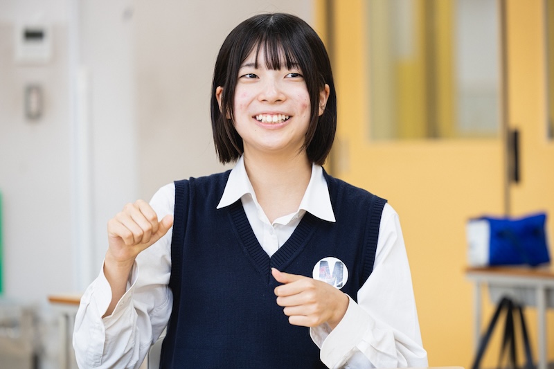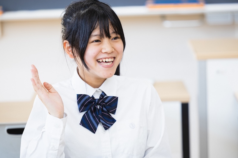 Iさん 私は受験生のときに学校説明会に来て、在校生がたくさん話してほんわかした雰囲気の学校でいいなと思ったので、この学校を受験しました。入学してから私もそのような活動をしてみたいと思って有志メンバーとして参加していたので、引き続き活動しています。私はこの学校が大好きです!